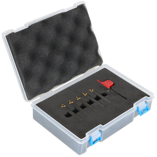 findmall 5 Piece1/4'' Carbide Indexable Turning Tool Set in Fitted Box For Lathe Tool