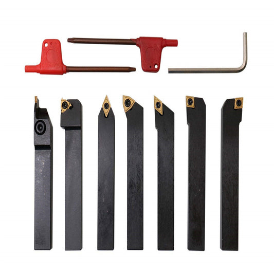 findmall 7Pcs 1/2 Inch Shank Lathe Boring Bar Indexable Carbide Turning Tool Set Steel Carbide Indexable Turning Tool