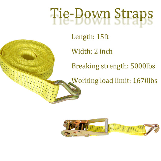 4Pcs Ratchet Straps 2 Inch x 15 Feet Tie-Down Straps 4400Lbs Heavy Duty Ratchet Cargo Strap Fit for Moving and Securing Cargo