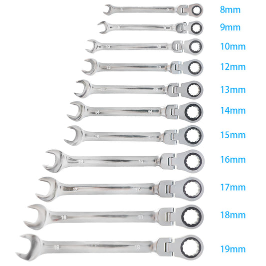 12pc 8-19mm Metric Flexible Head Ratcheting Wrench Combination Spanner Tool Set
