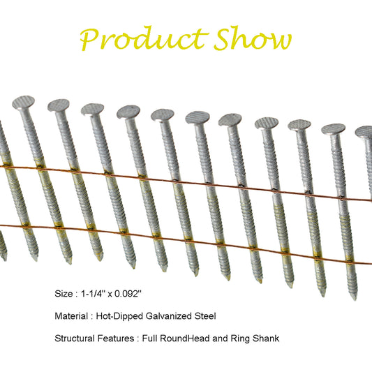 findmall 3600 Count Siding Nails 1-3/4 Inch by .092 Inch 15 Degree Ring Shank Hot-Dipped Galvanized Collated Wire Coil