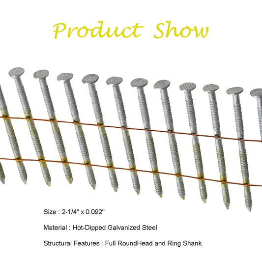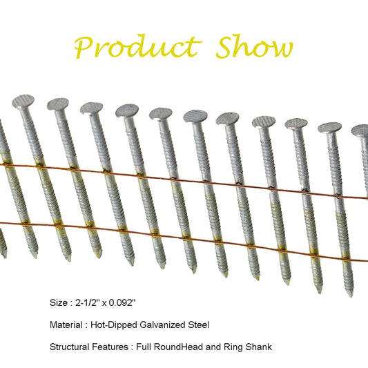 findmall 3600 Count Siding Nails 2-1/2 Inch by .092 Inch 15 Degree Ring Shank Hot-Dipped Galvanized Collated Wire Coil. Adapted to gun type CN45.