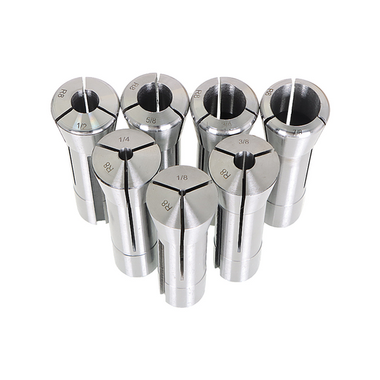 findmall 7Pcs #2 MT Collet Set 1/8" - 1/2" 2MT MT2 3/16 1/4 3/8 Round Chuck