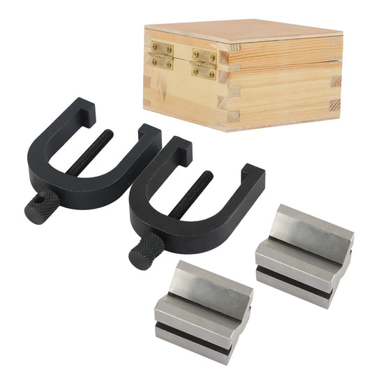 findmall V Block with Clamp Set Hardened Steel 90 Degree Angle Accuracy V Block Set 1-5/8 x 1-1/4 x 1-1/4 Multi-use Gauge Gage Machinist Tool with Wooden Case
