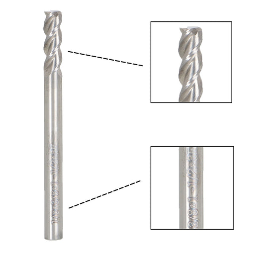findmall 3/8 Inch Helix Carbide End Mill 3 Flute Carbide Stub Length 45 Degree Fit for Aluminum Cut Non-Ferrous Metal Upcut CNC Spiral Router Bit