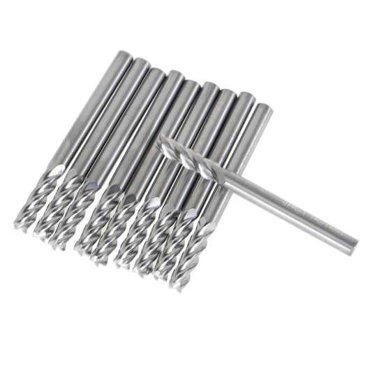 findmall 10Pcs 1/8 Inch Helix Carbide End Mill 4 Flute 1/2 Inch Length of Cut Fit for Aluminum Cut Non-Ferrous Metal Upcut CNC Spiral Router Bit