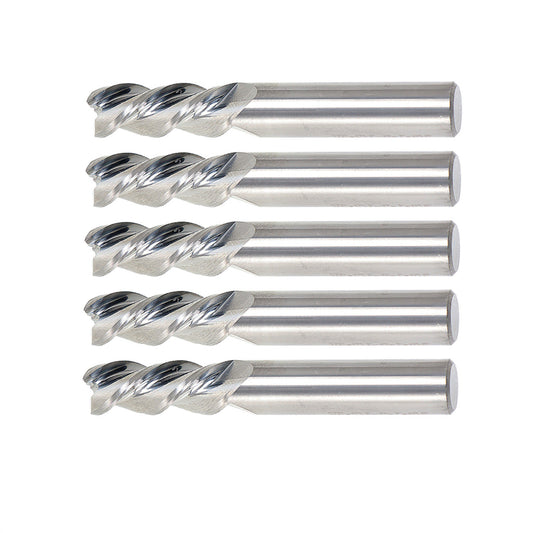 findmall 5Pcs 3/16 Inch Helix Carbide End Mill 3 Flute 9/16 Inch Length of Cut Fit for Aluminum Cut Non-Ferrous Metal Upcut CNC Spiral Router Bit