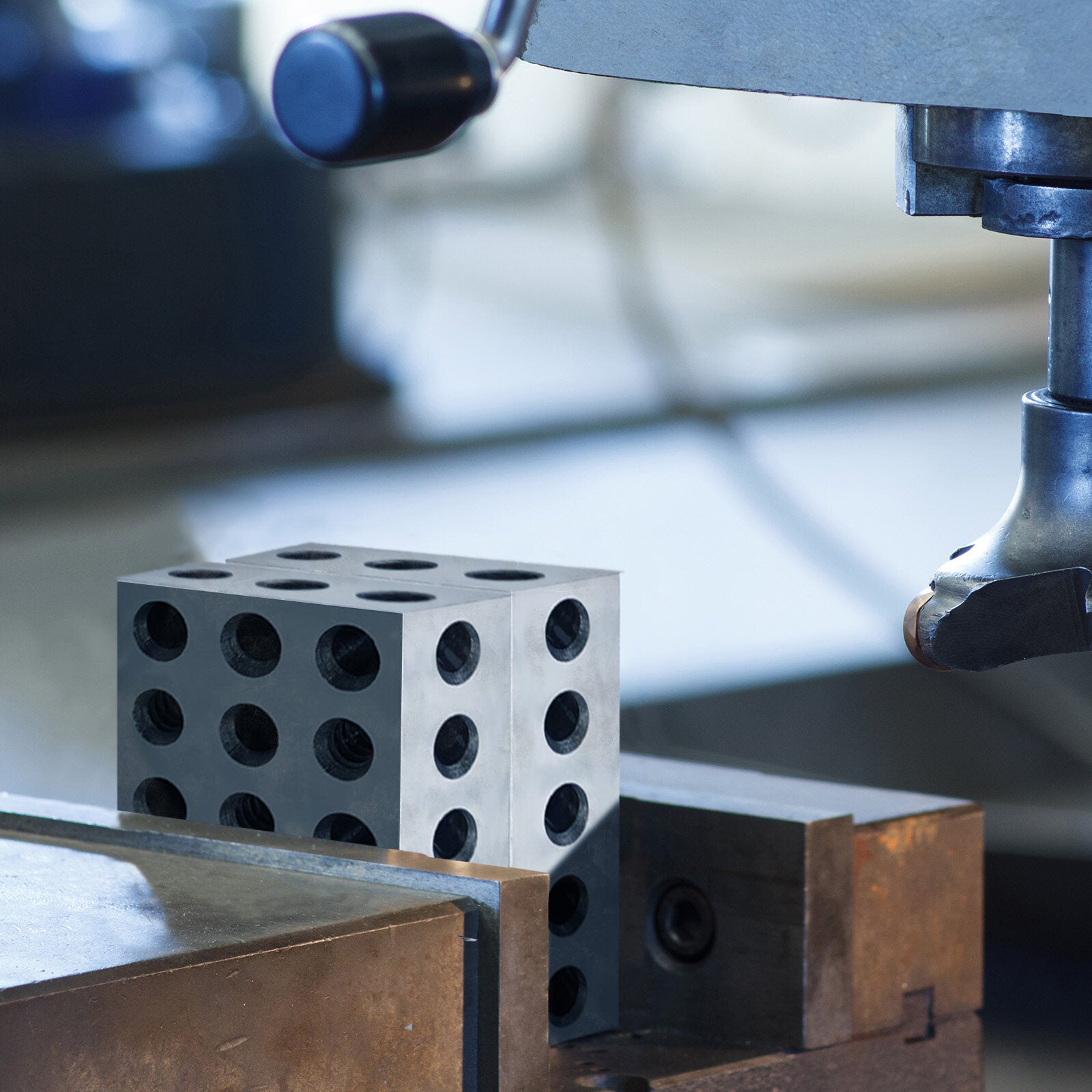 Made of precision-grade tool steel hardened and ground on all 6 sides of block