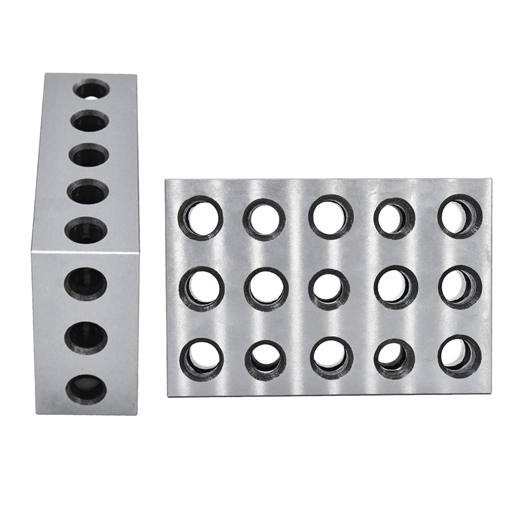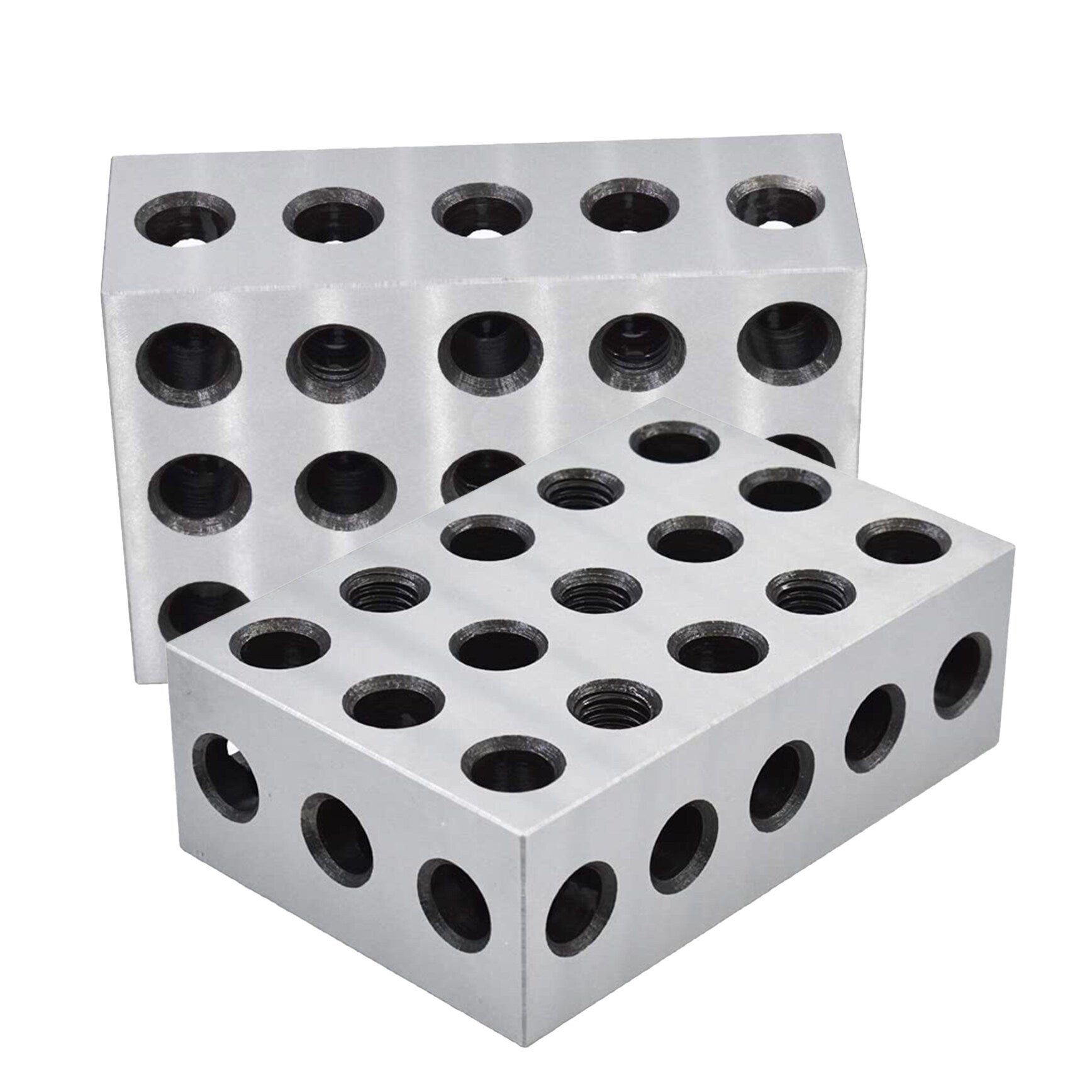 1 x 2 x 3 Inch Blocks Matched Pair Hardened Steel 23 Holes Precision Machinist Milling