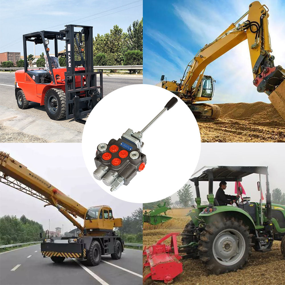 The 2 spools hydraulic directional control valve 2P40 with joysticks. The adjustable release valve and durable cast iron body are easy to use. All spools are standard double acting with spring return in the neutral position.