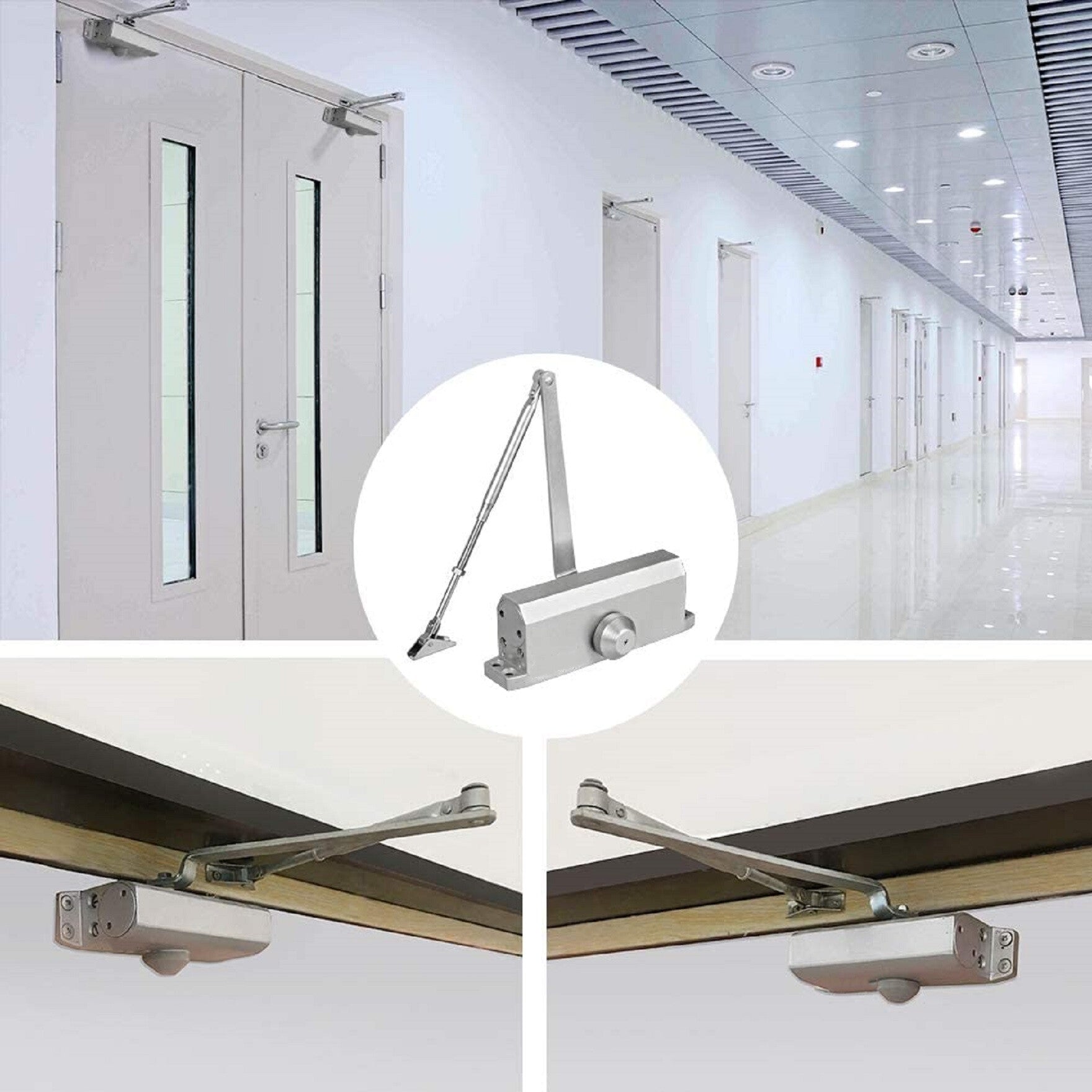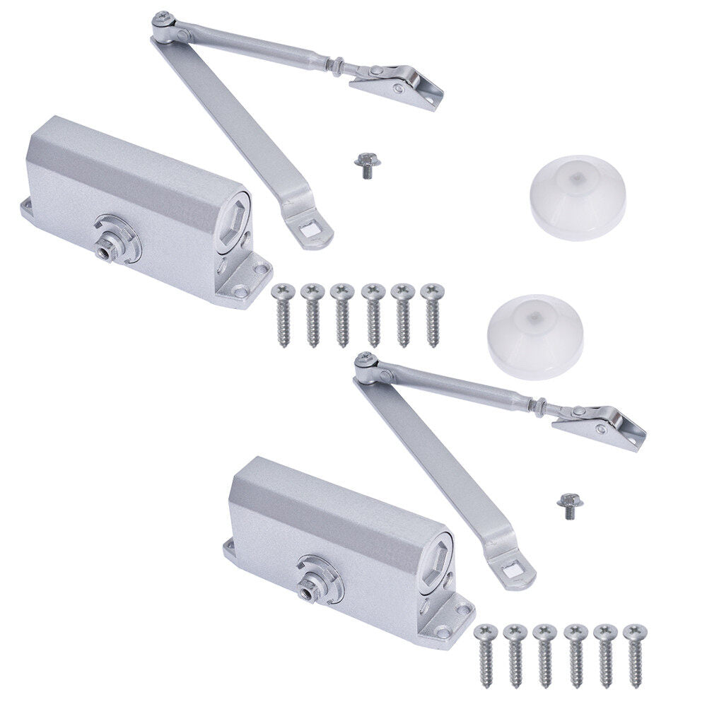 2Pcs Door Closer Aluminum Alloy Two Independent Valves Control Adjustable Fire Rated Overhead Door Opener Closer Soft Close for Home Hotels Guesthouses and Other Room Doors (2pc 25-45kg)
