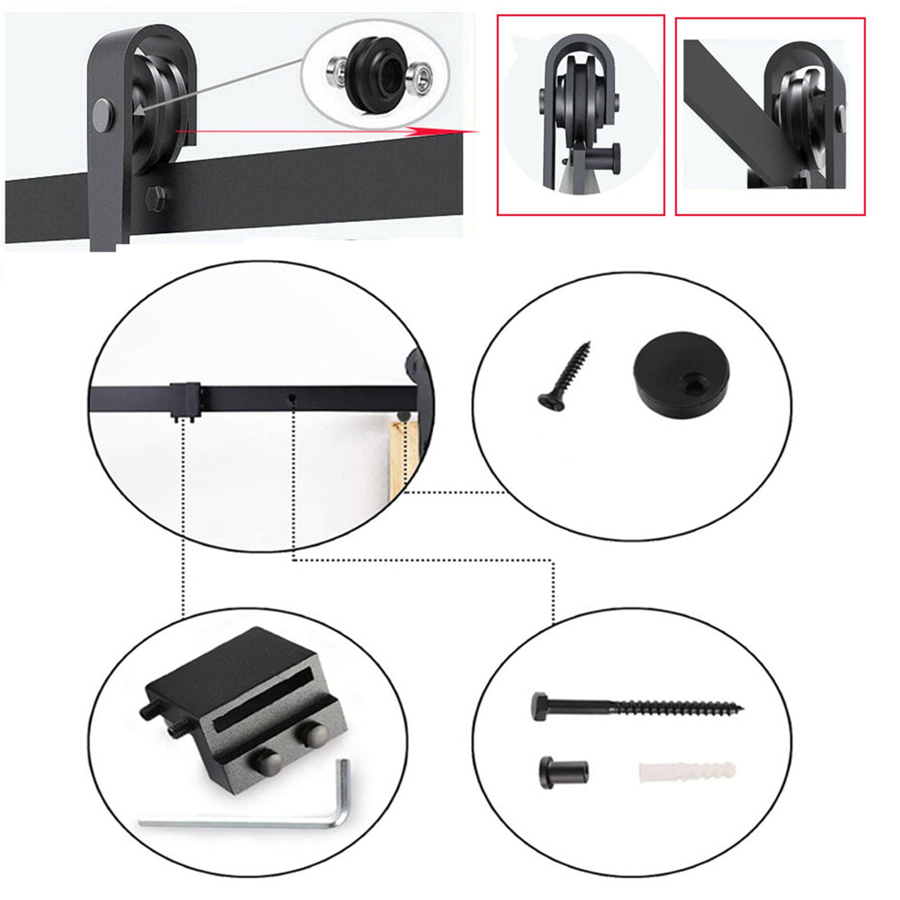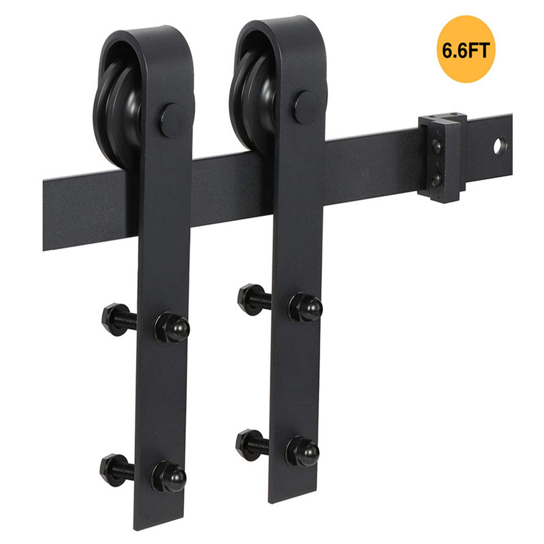6.6FT Heavy Duty Sturdy Sliding Barn Door Hardware Kit Closet Cabinet Track System Carbon Steel J Shape Kit Roller Hanger Suitable For Single Door