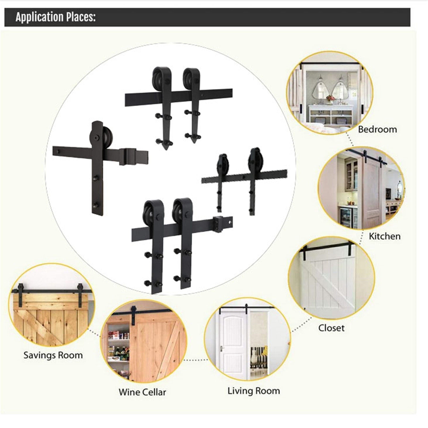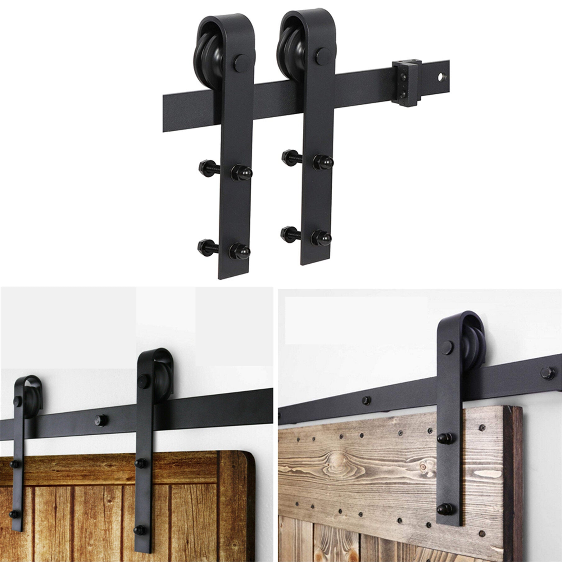 6.6FT Heavy Duty Sturdy Sliding Barn Door Hardware Kit Closet Cabinet Track System Carbon Steel Arrow J Shape Kit Roller Hanger Suitable For Single Door