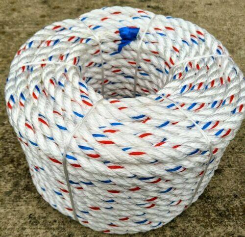 findmall 1/2 In Braid Polyester Rope Bull Rigging High Force Polyester Rope 150 FT White Red Blue