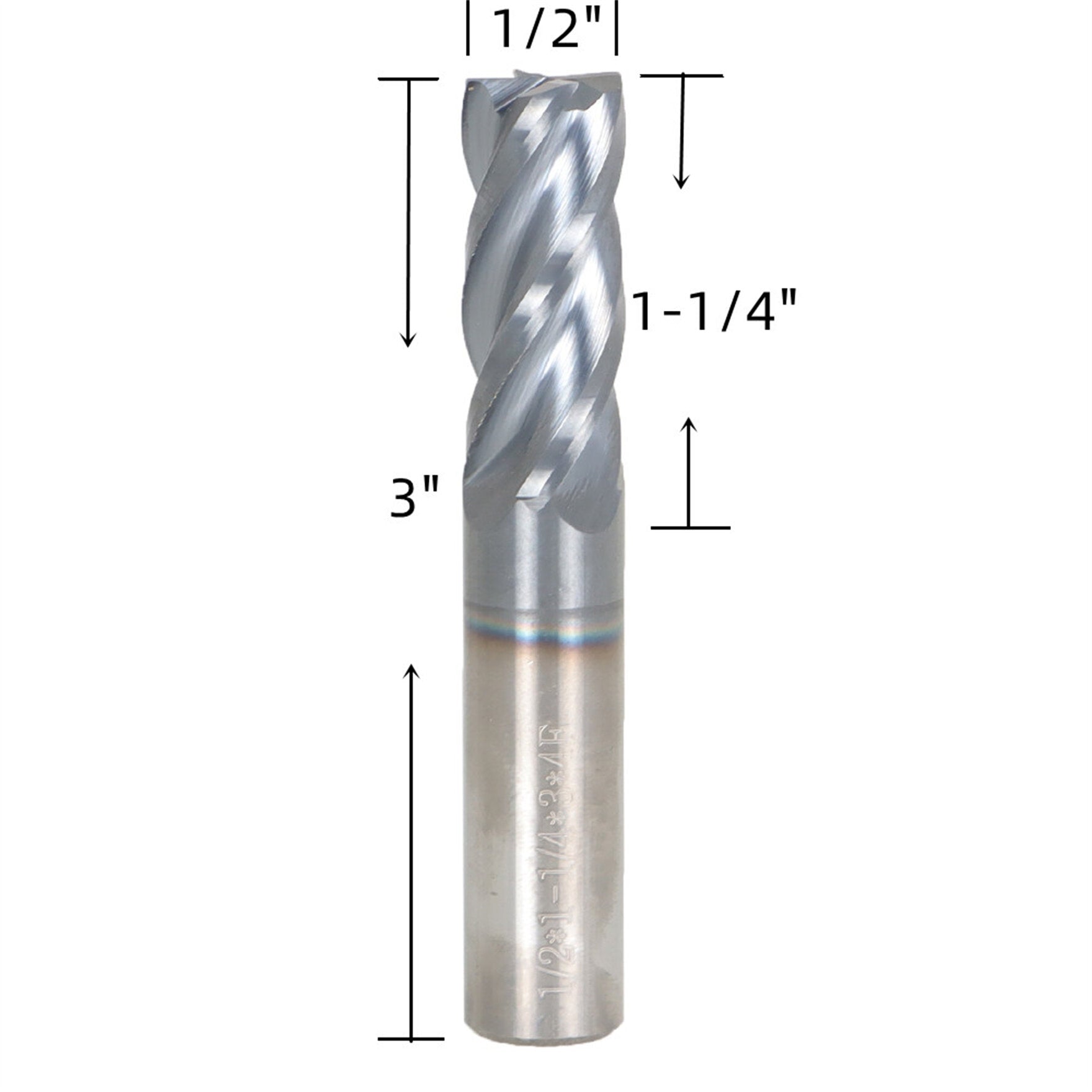 1/2 Inch Helix Carbide End Mill Tialn Coated 4 Flute 1-1/4 Inch Length of Cut