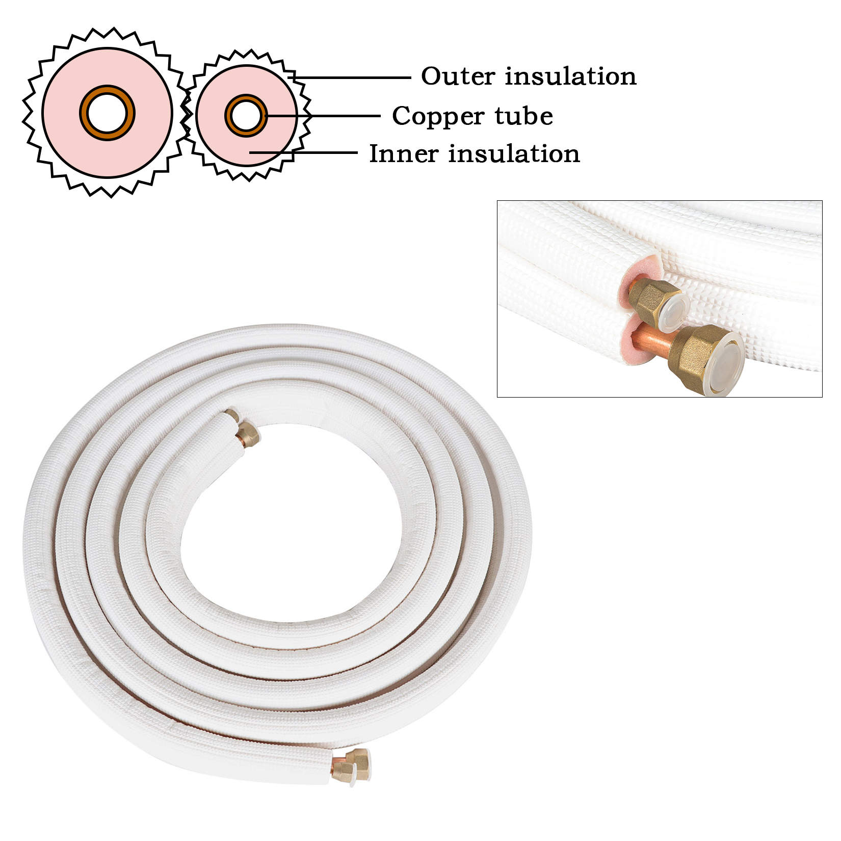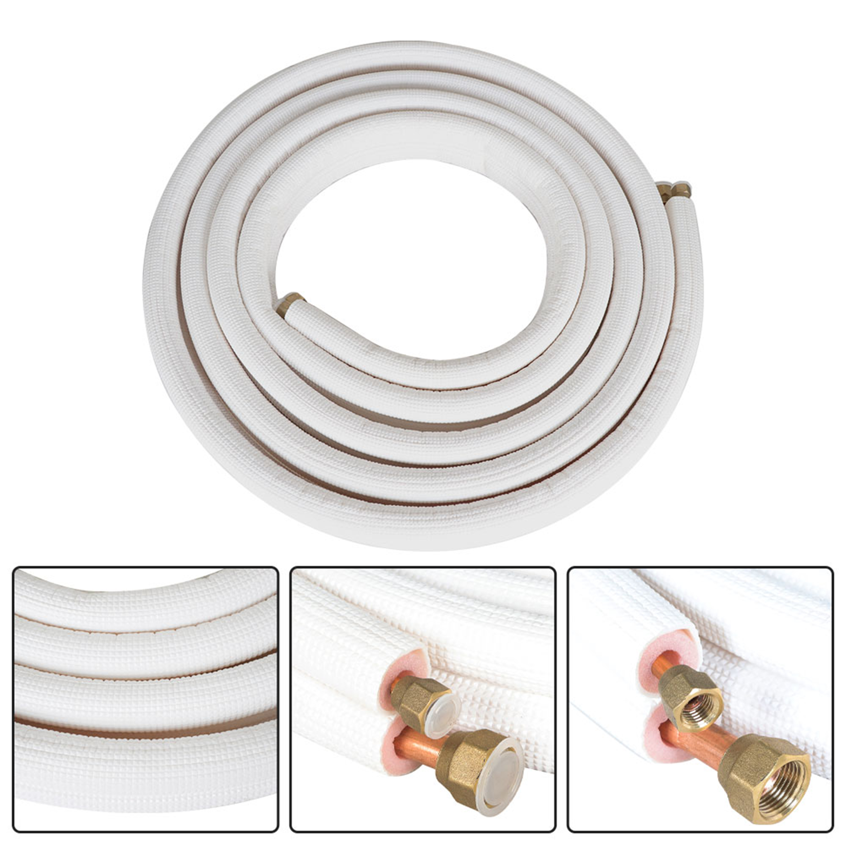16FT Air Conditioning Copper Tubing Hose Extension 1/4" and 1/2" Twin Copper Hoses Insulated Copper Hoses