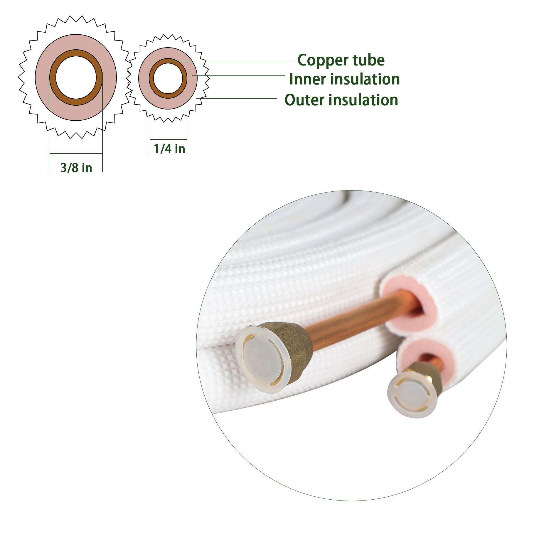 16FT Air Conditioning Copper Tubing Hose Extension 1/4 and 3/8 Twin Copper Hoses Insulated Copper Hoses