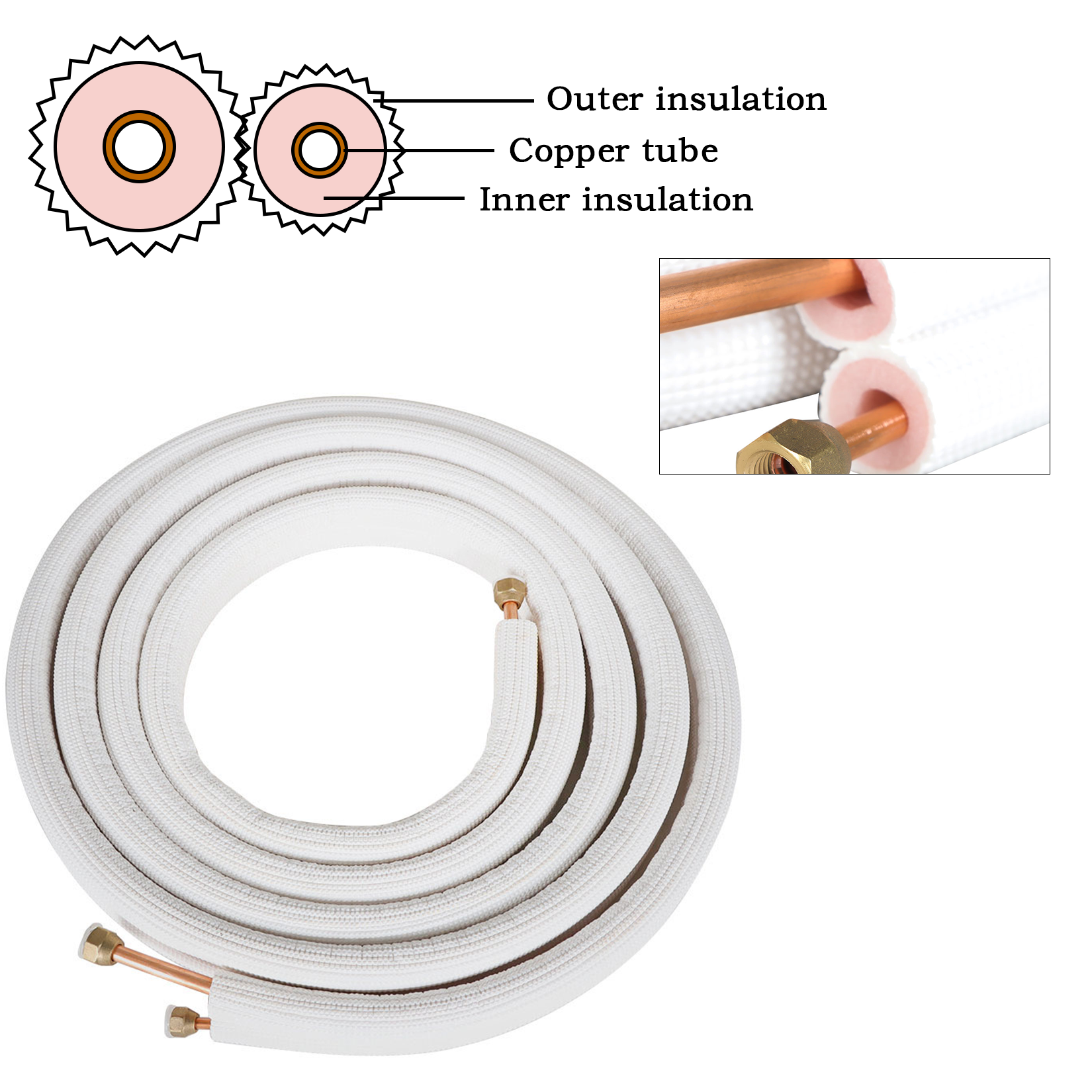 16FT Air Conditioning Copper Tubing Hose Extension 1/4" and 3/8" Twin Copper Hoses Insulated Copper Hoses
