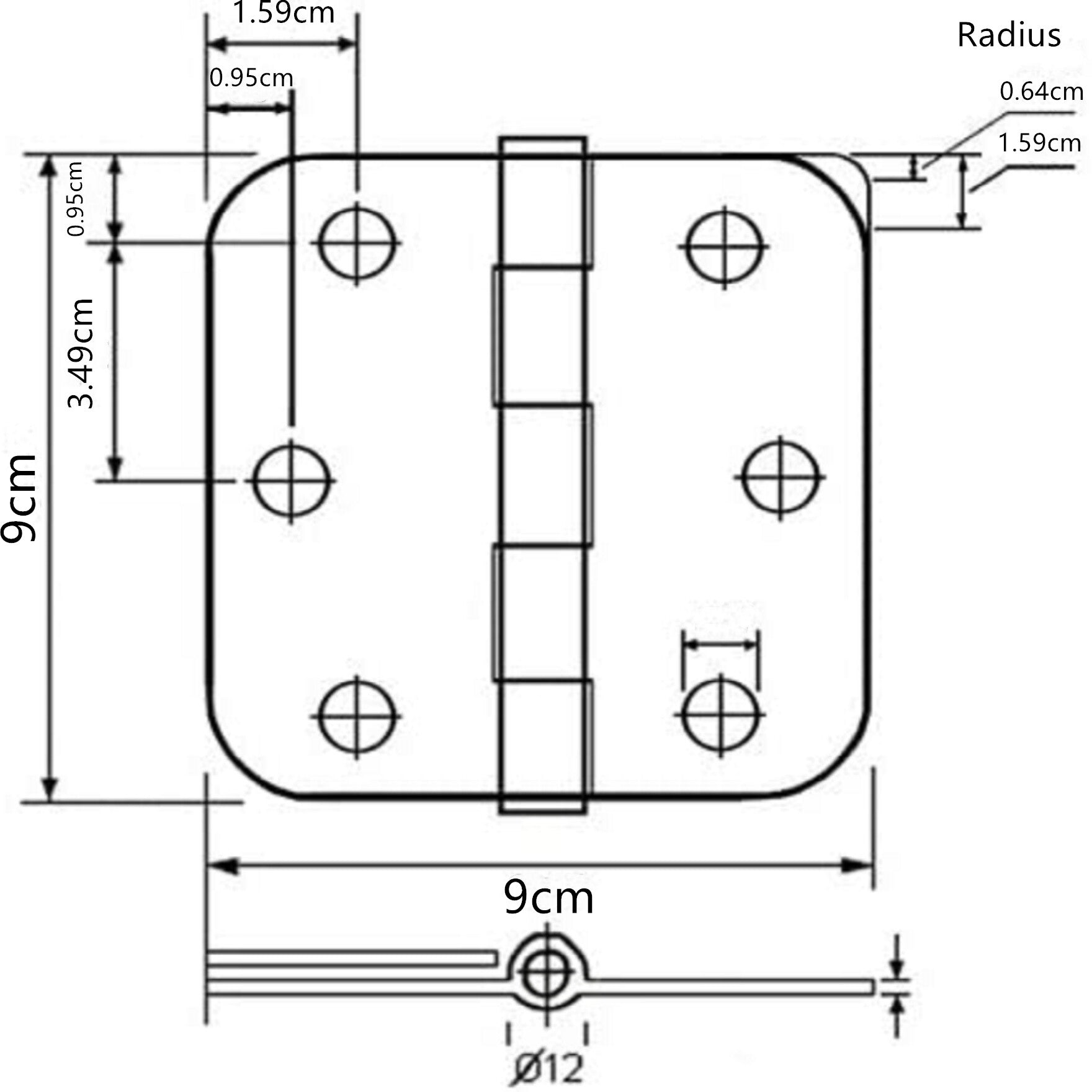 Radius corner: 1/4 inch