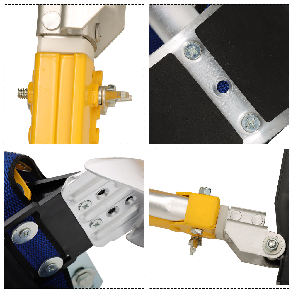 Safety: 3-position heel bracket accommodating different foot sizes & preventing slippage in every direction. The dry wall stilts are equipped with premium grade rubber soles to prevent slipping and protect floor from scratches. The adjustable leg strap with metal buckle and heel plate can bring more safety.
