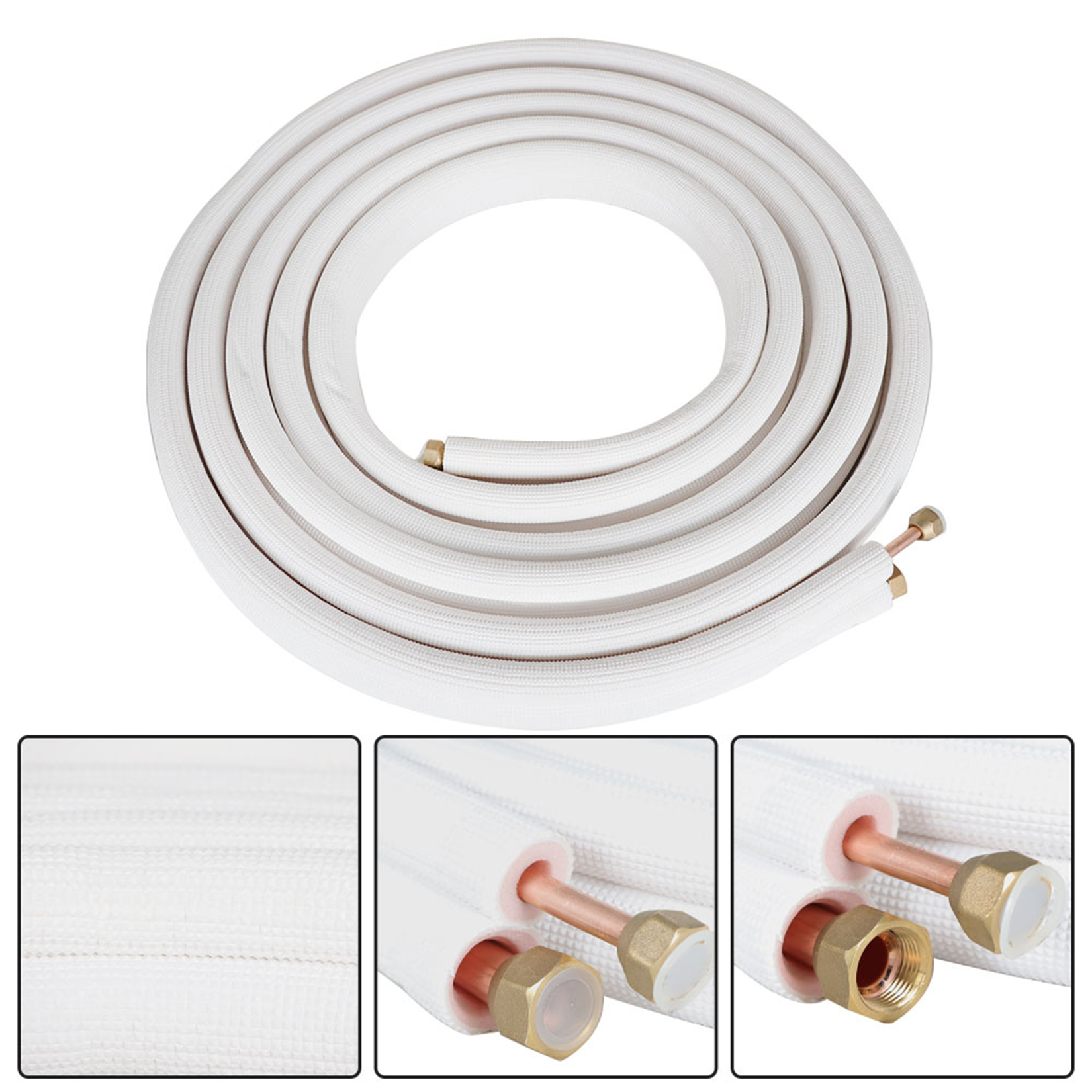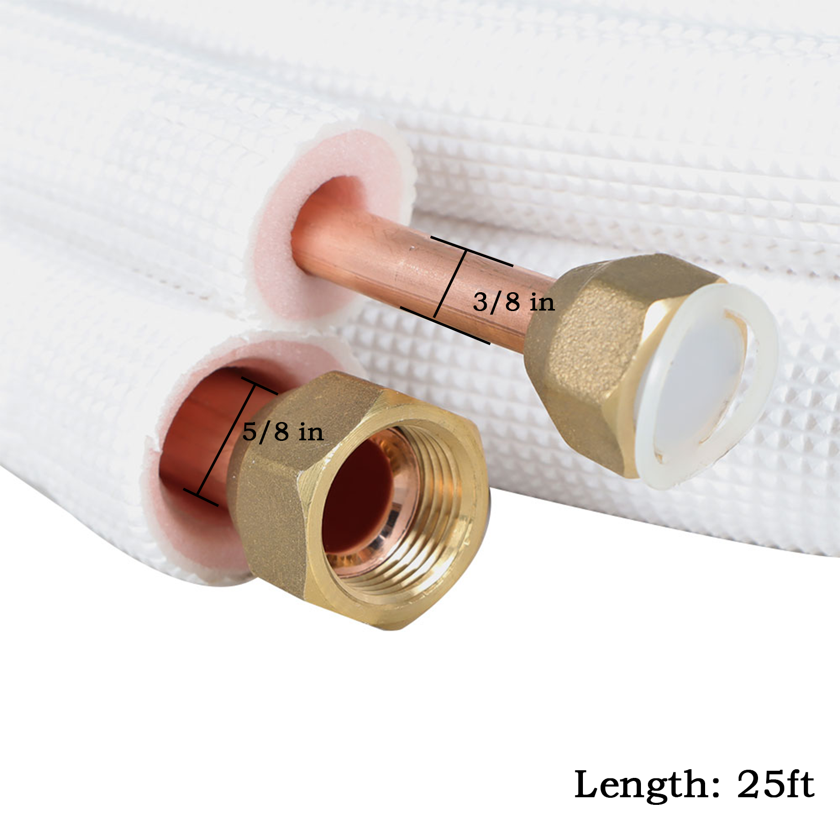 25FT Air Conditioning Copper Tubing Hose Extension 3/8" and 5/8" Twin Copper Hoses Insulated Copper Hoses
