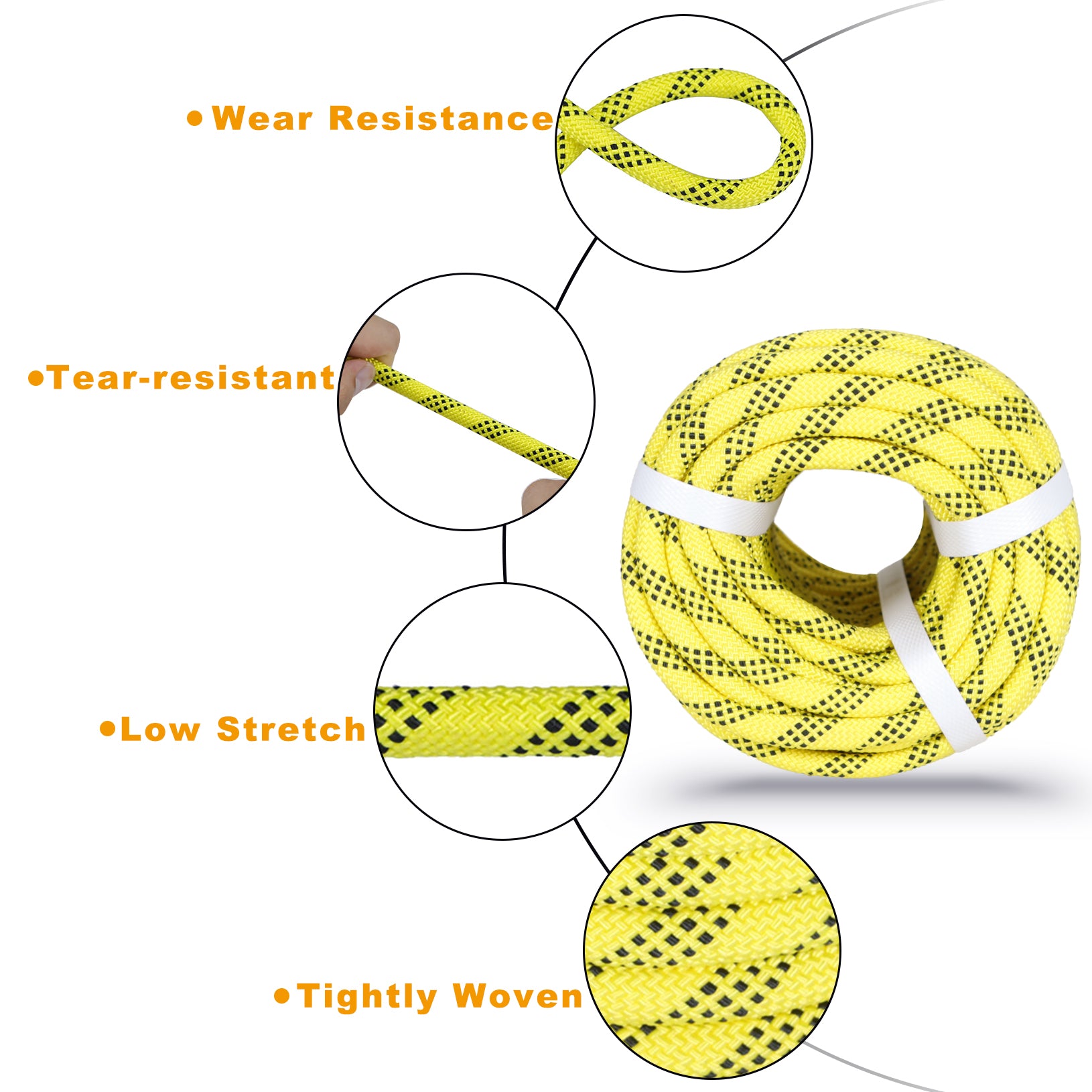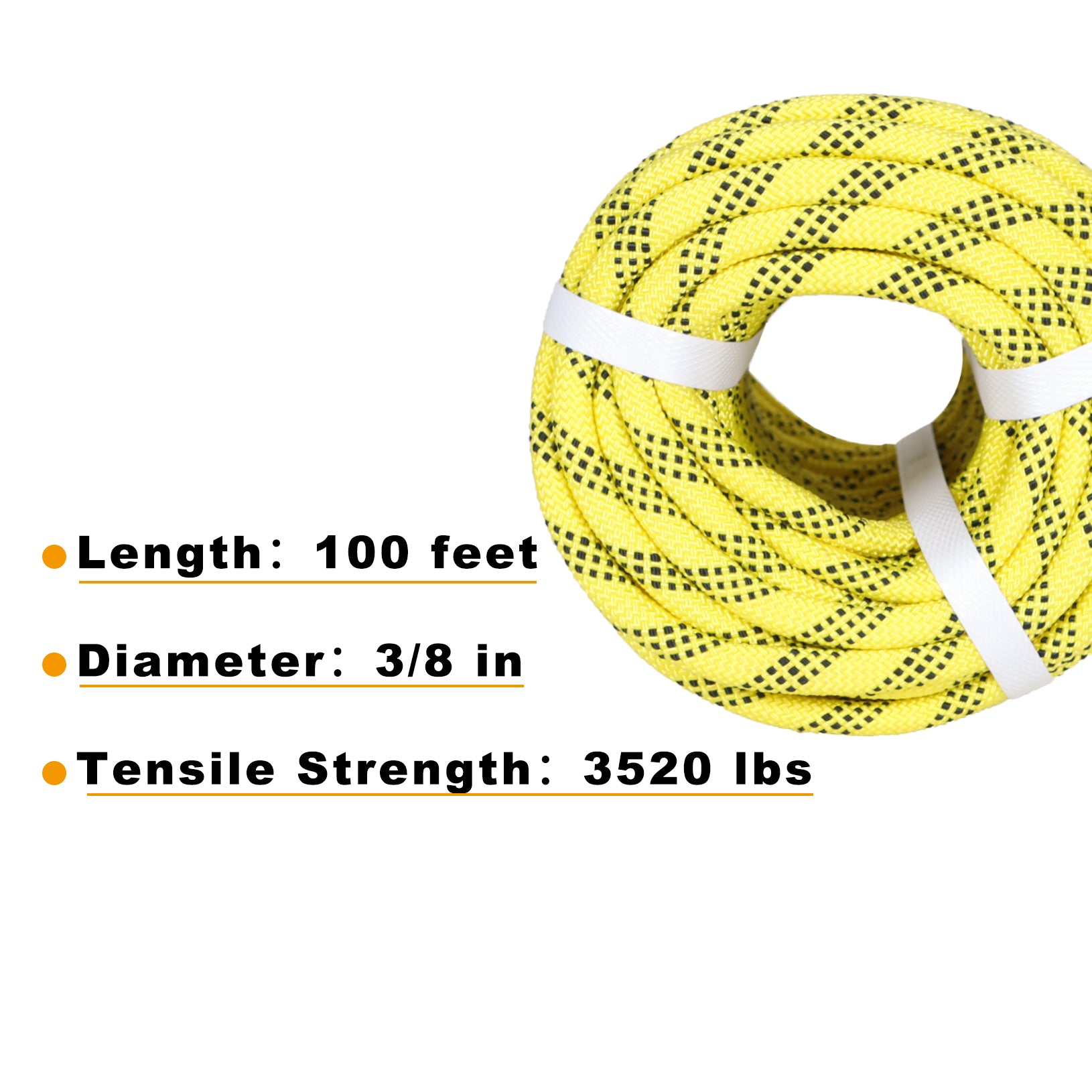 findmall 3/8 Inch 100 Feet Braided Polyester Rope Tree Work Rope Rigging Rope for Outdoor Swing Camping 3250 LBS Yellow Black