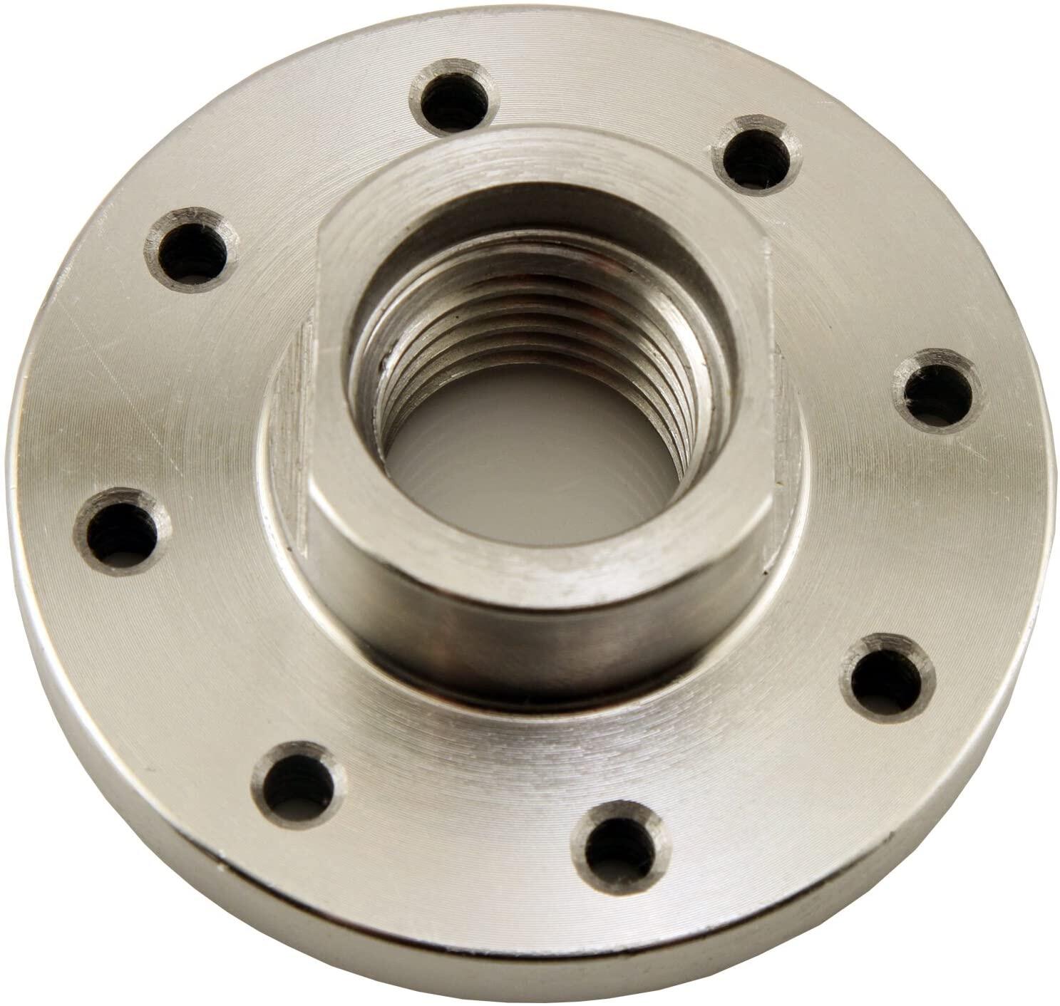 This 3-Inch diameter faceplate has 4 screw mounting holes, and two machined flats to grip with a wrench - easy on and easy off.