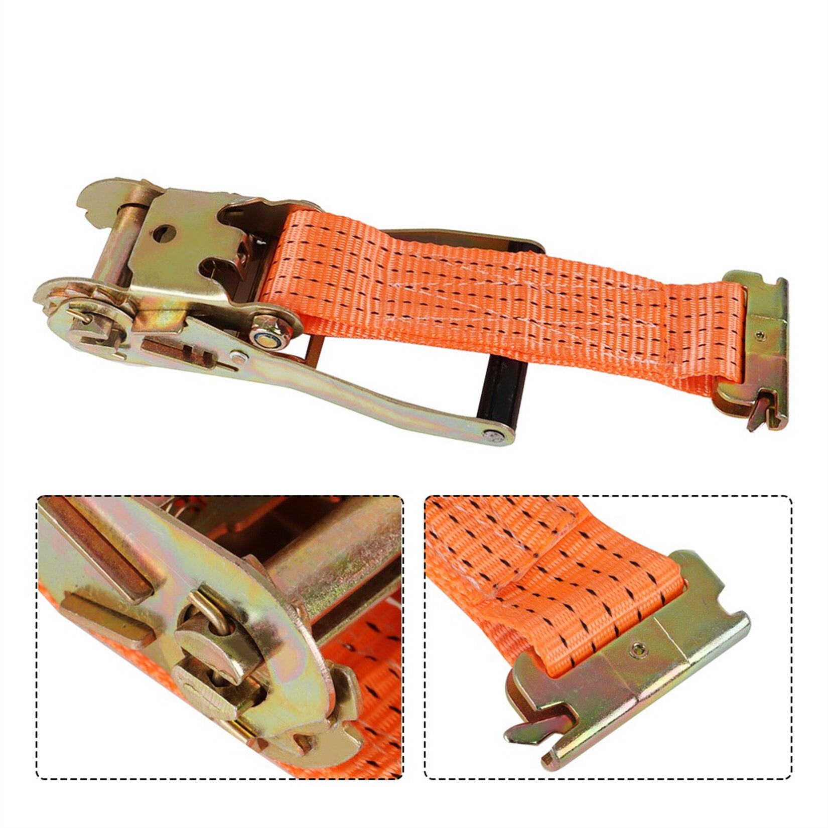 Ratchet straps can be fixed in the transportation, movement, shipping or storage of goods. Cargo tie-down straps is easy to remove and easy to operate. The polyester webbing passes through two semicircular shafts and shakes the handle to tighten. Hold the handle and lift the middle handle to shake the handle to the top, you can relax the gear and disassemble
