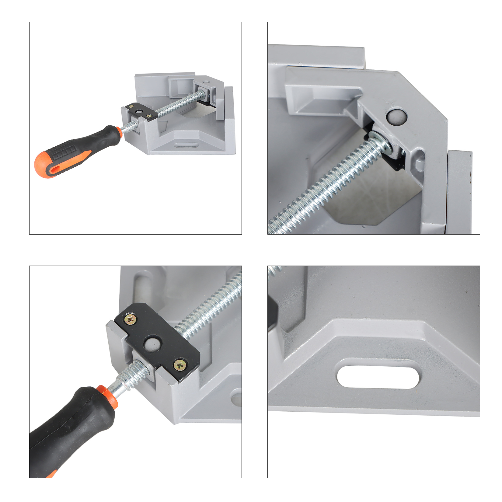 3. The rotary screw of the right angle clamp is not easy to slide the teeth. The single handle jaw can rotate in both directions, and can accommodate 2 different wood thicknesses.