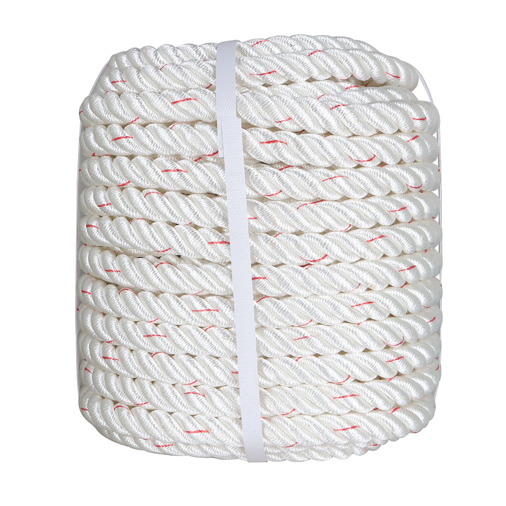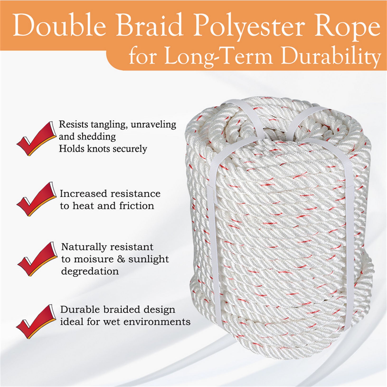 findmall 5/8 IN Braid Polyester Rope Bull Rigging High Force Polyester Rope 100 FT White With Red
