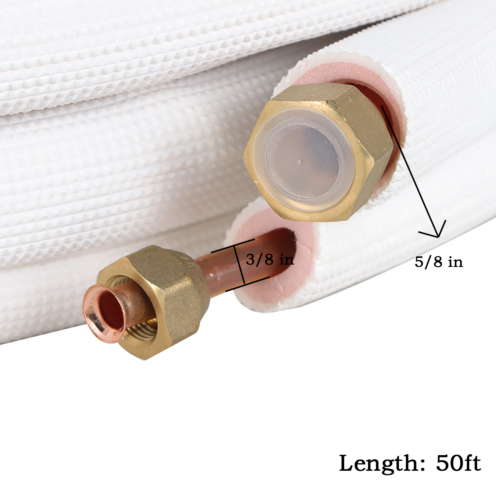 50FT Air Conditioning Copper Tubing Hose Extension 3/8" and 5/8" Twin Copper Hoses Insulated Copper Hoses