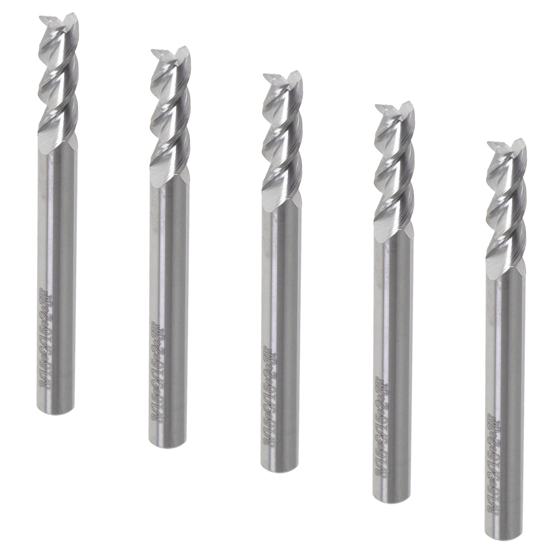 5Pcs 3/16 Inch Helix Carbide End Mill 3 Flute 9/16 Inch Length of Cut