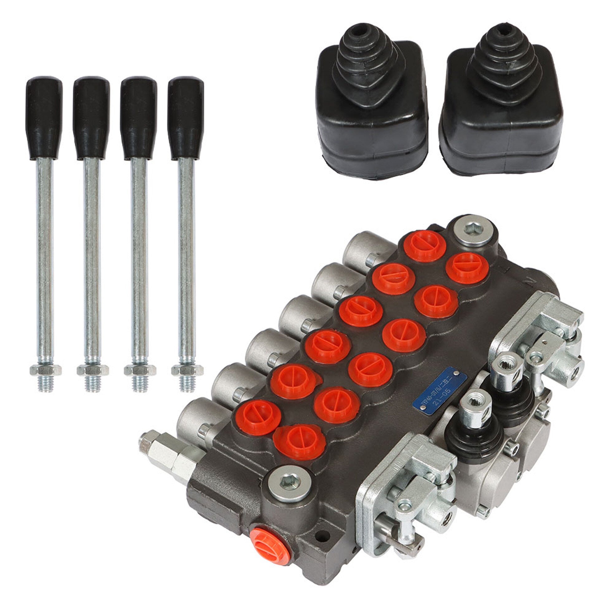 findmall 6 Spool 11 GPM 3625 PSI Hydraulic Directional Control Valve with 2 Joystick, SAE Ports Double Acting Valve for Small Tractors, Tractors, Loaders, Log Splitter