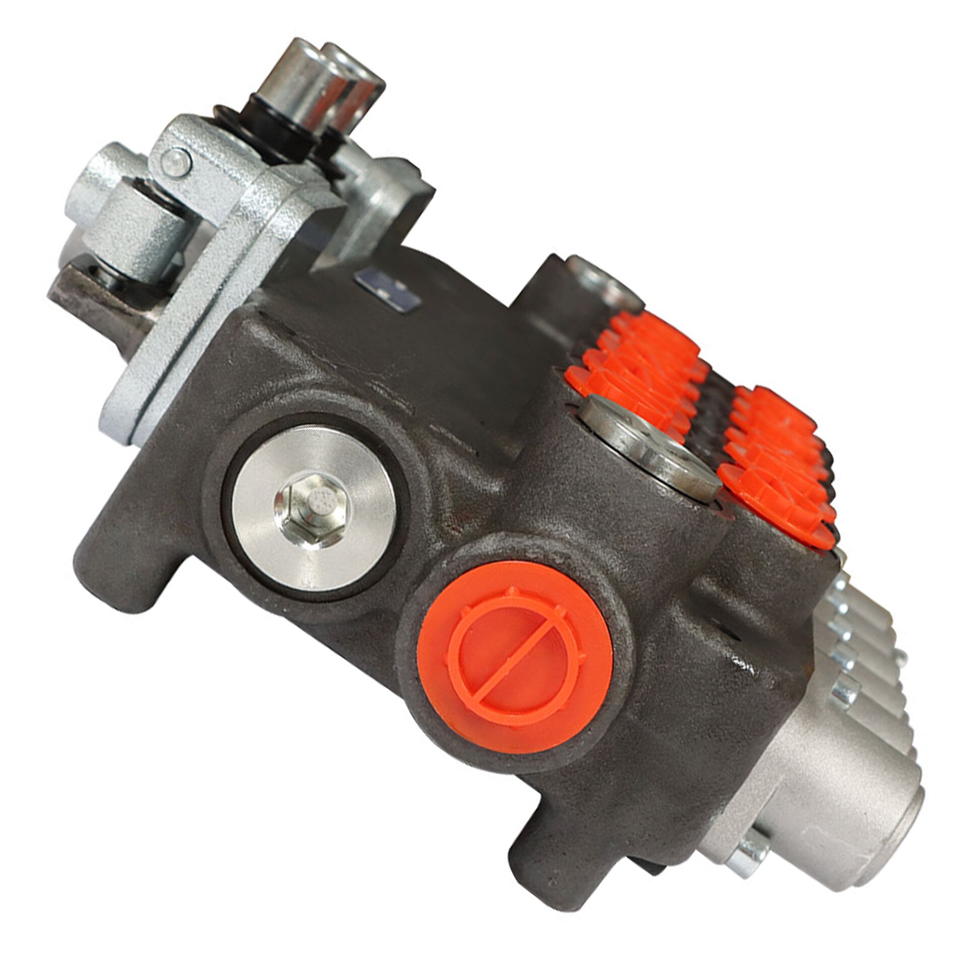 This monoblock valve is a hydraulic directional control valve. These valves are used to start and stop fluid flow into hydraulic cylinders or hydraulic motors.