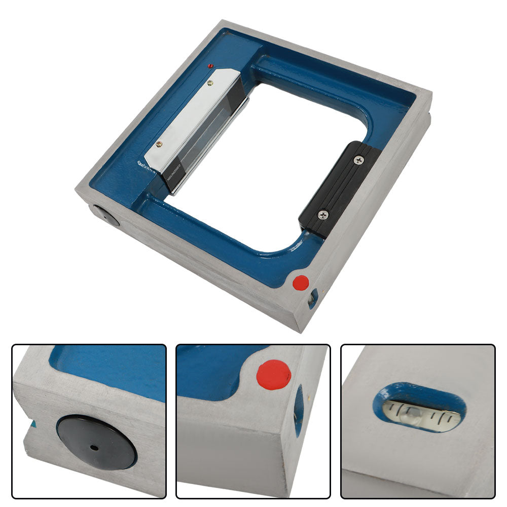 findmall 8" x 8" Level Frame Spirit Level 0.0002"/10" Accuracy, Cast Iron Frame Balance Level 4901-0078