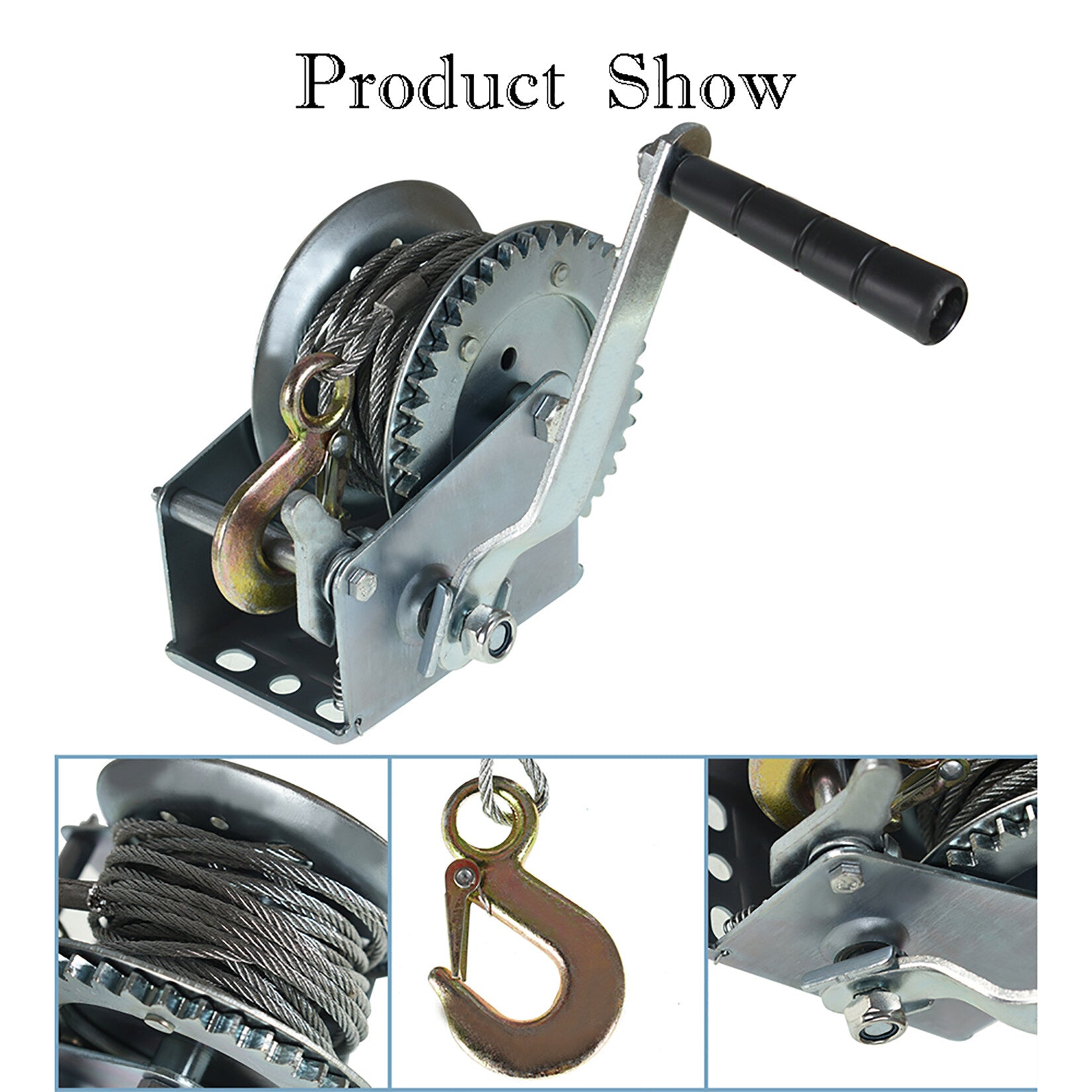 1Pc Hand Winch with Wire Rope and Hook