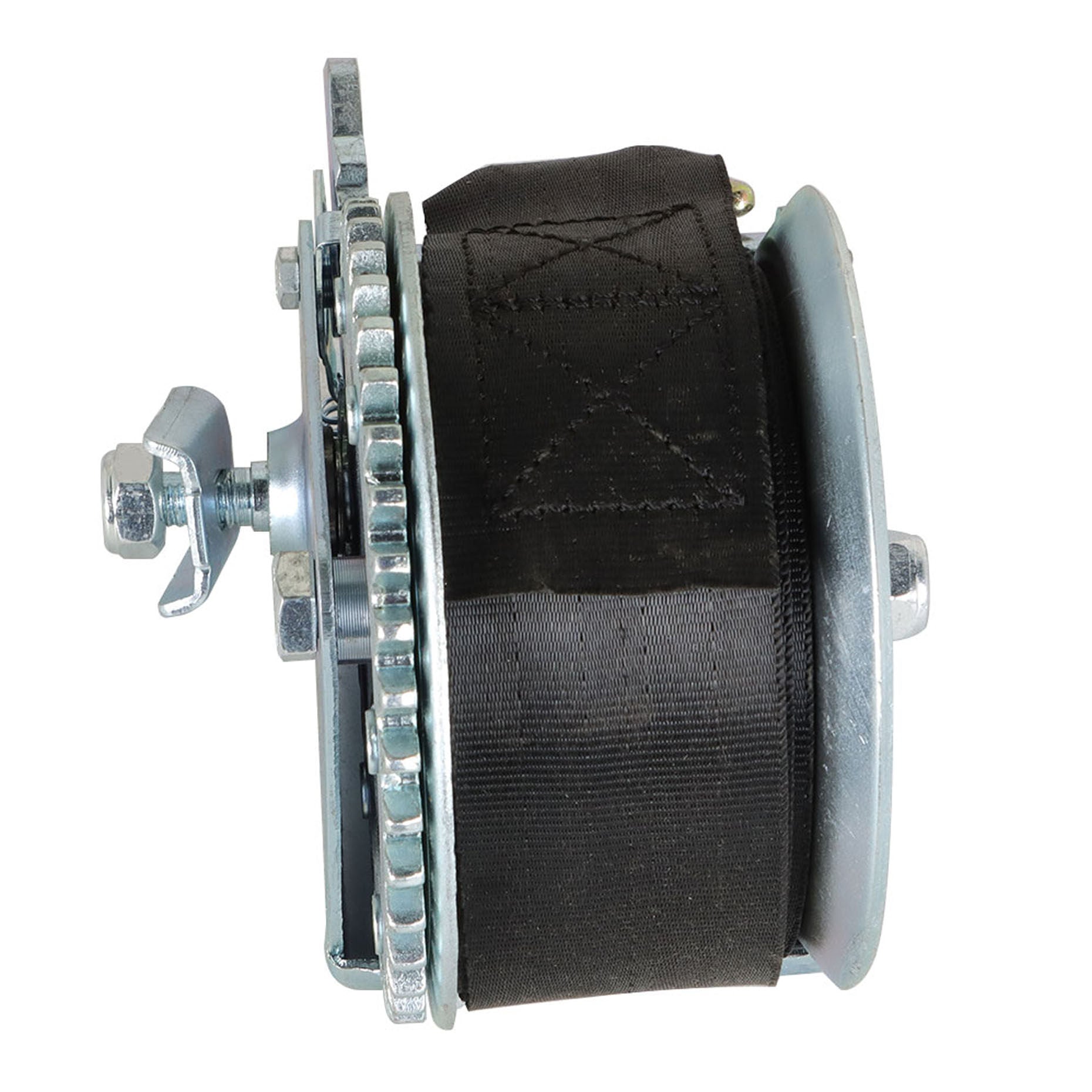 This manual winch is fitted with a sturdy safety pawl that allows forward and reverse ratcheting.