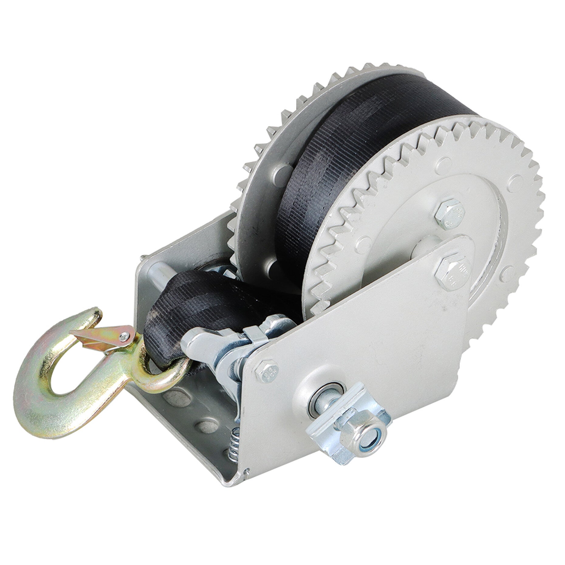 This manual winch is fitted with a sturdy safety pawl that allows forward and reverse ratcheting.