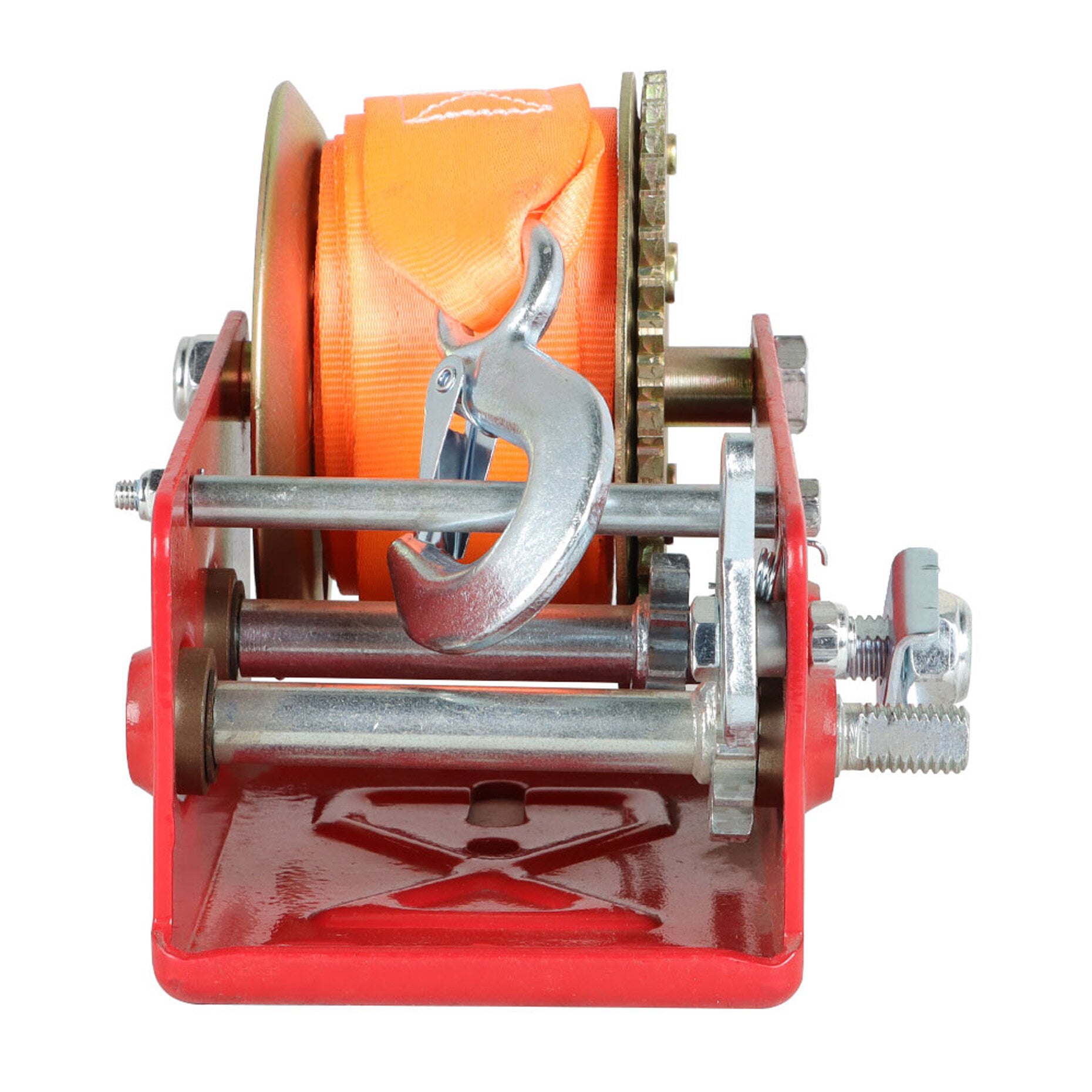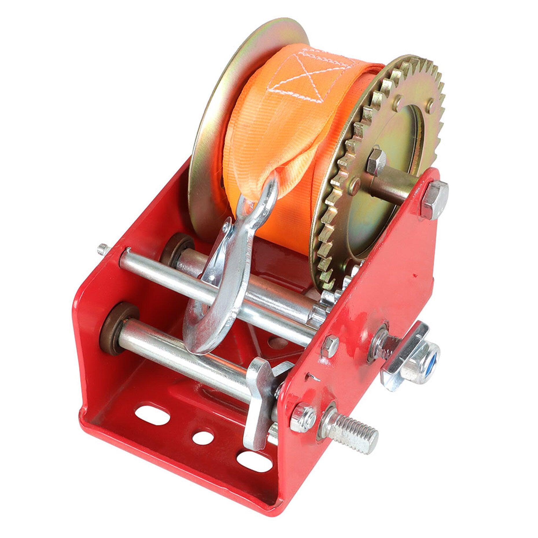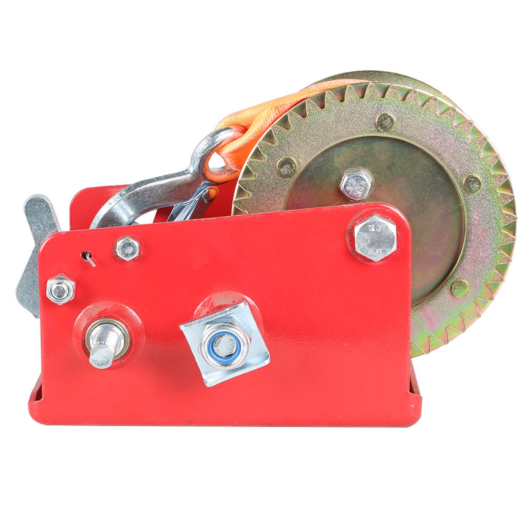 This manual winch is fitted with a sturdy safety pawl that allows forward and reverse ratcheting.
