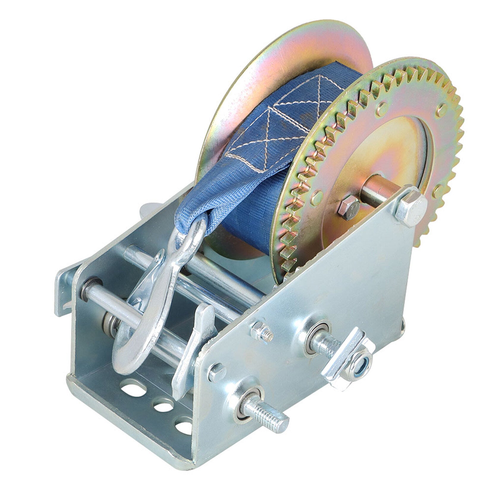 This manual winch is fitted with a sturdy safety pawl that allows forward and reverse ratcheting.
