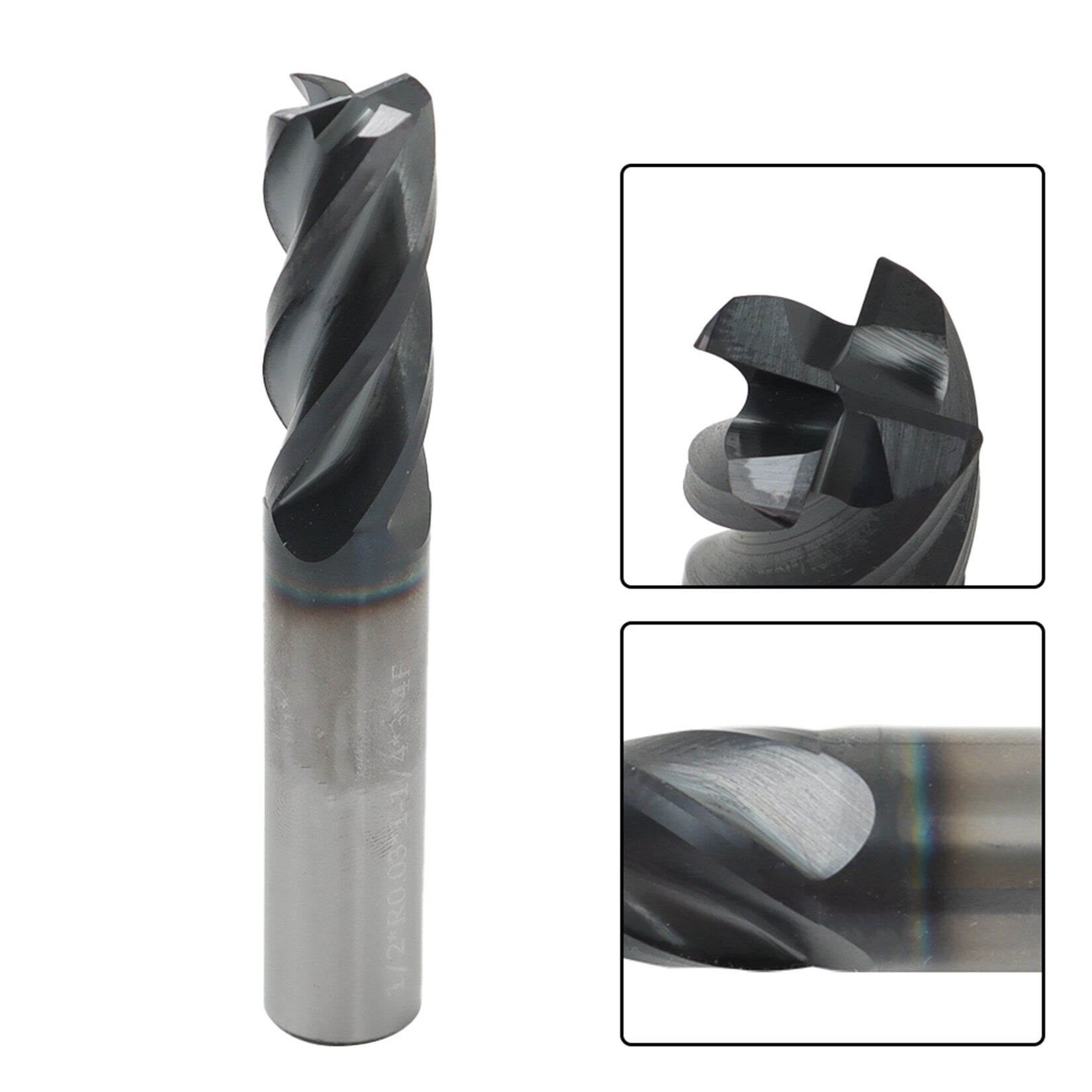 findmall Helix Speed End Mill 1/2 Diameter 4 Flute 0.03 Rounded 3 Length Fit for CNC Spiral Router Bit