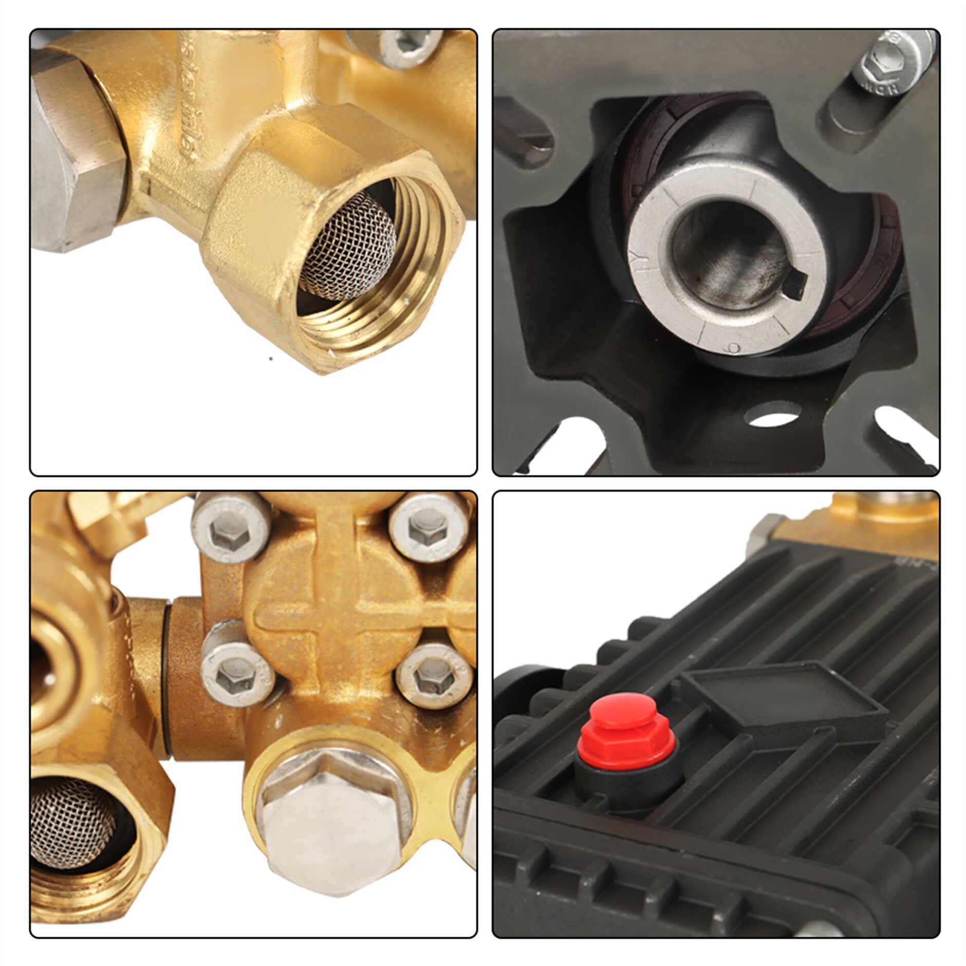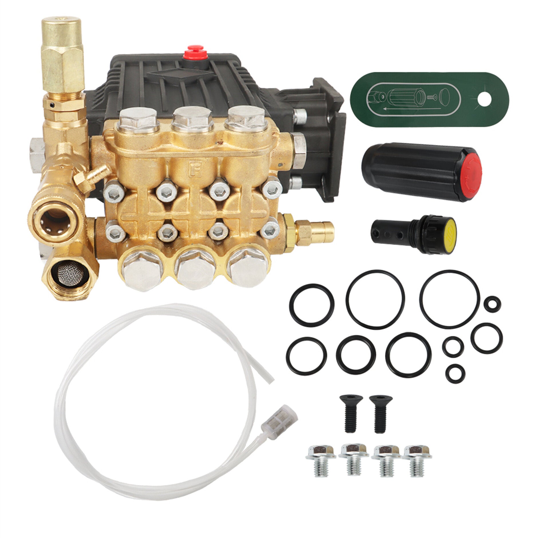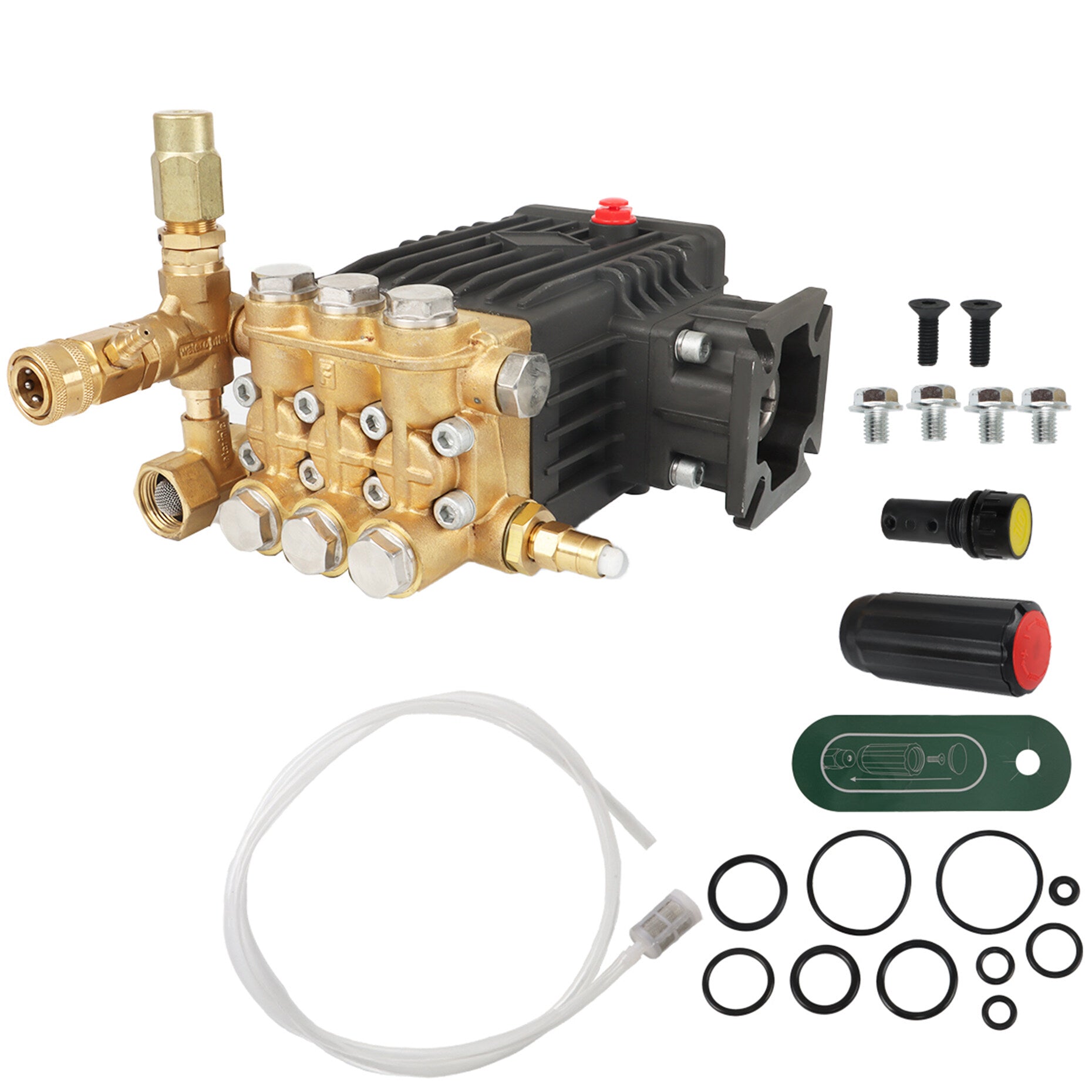 Unloader valve: Detachable (bolt-on) unloader valve, pressure-adjustable with 20:1 detergent injector and built-in water filter