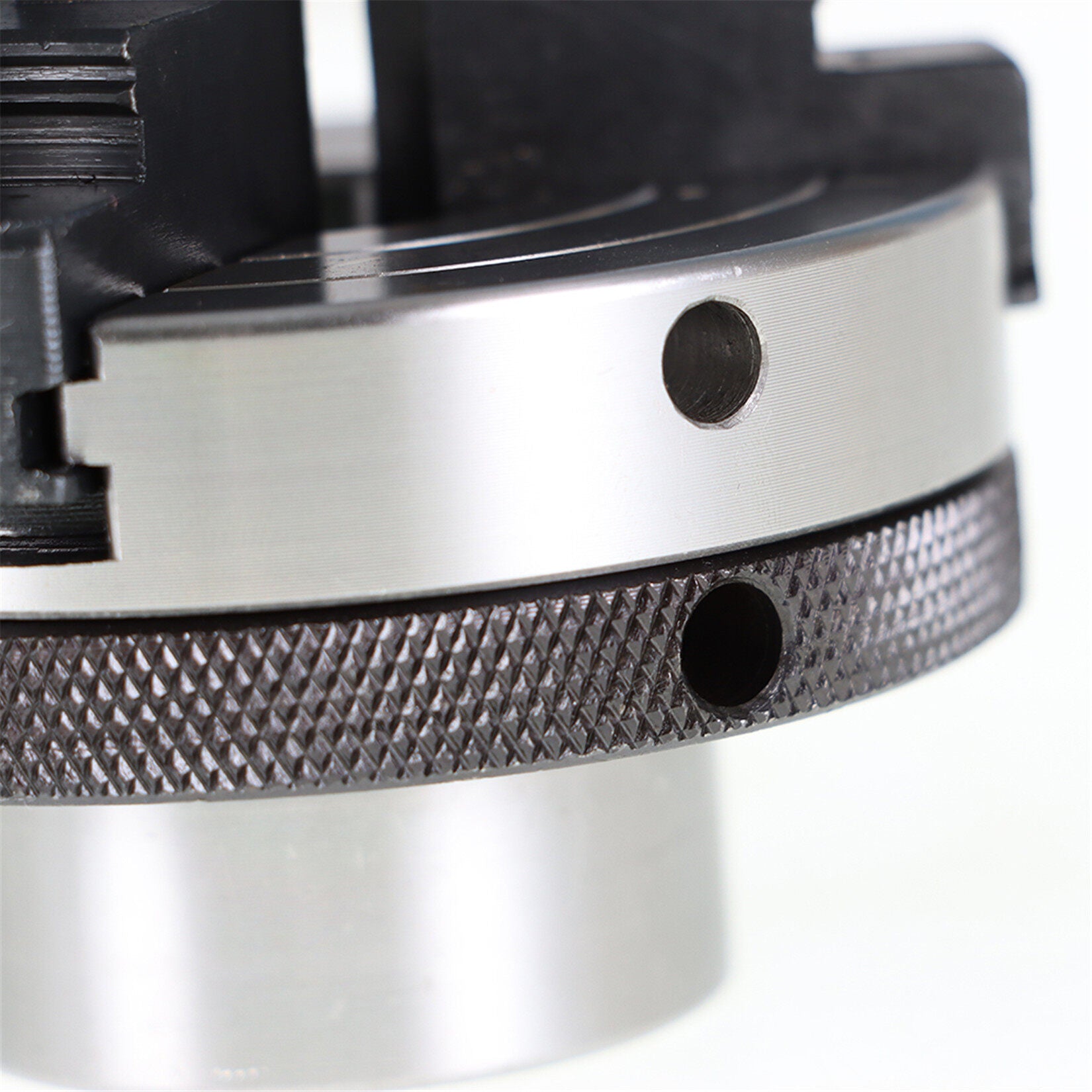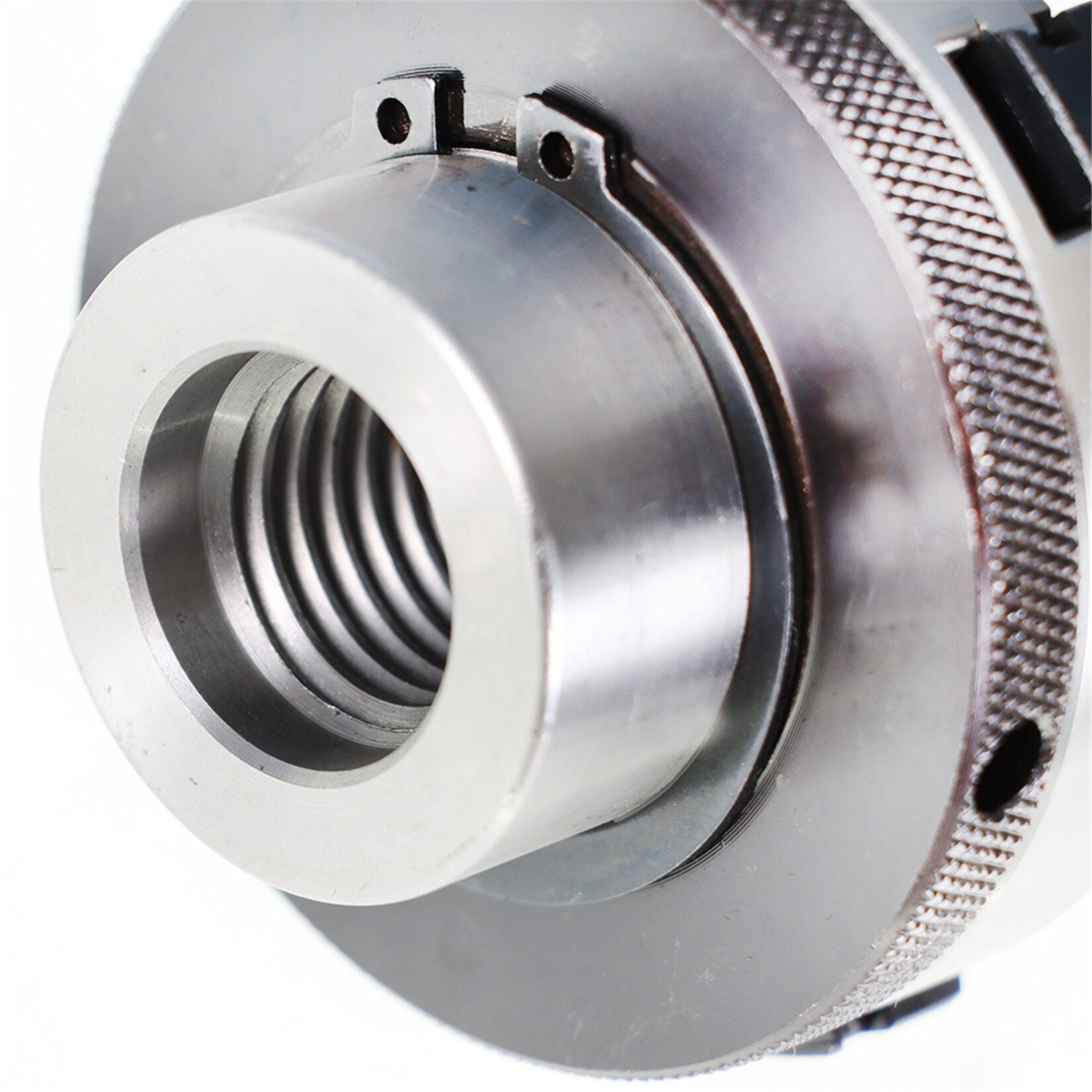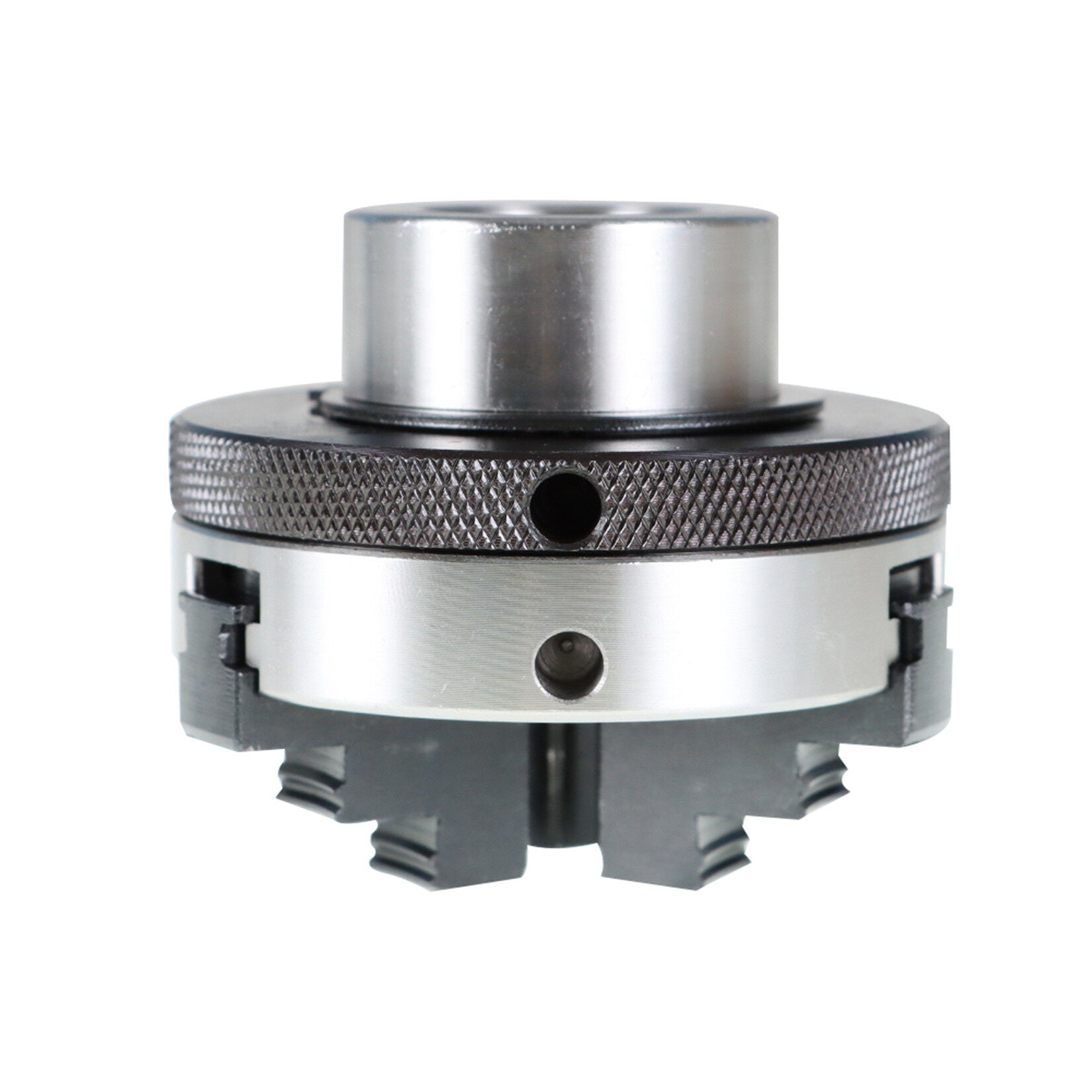 This self-centering style 3-Jaw Chuck has reversible stepped jaws for internally or externally holding a variety of round or square workpiece sizes. Setup is quick and easy by twisting the knurled adjustment plate on the back of the chuck.